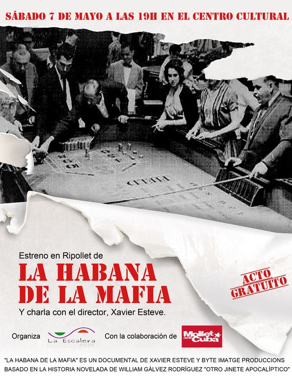 La Sala d'Actes del Centre Cultural acollirà aquest dissabte, 7 de maig, a les 19 hores la projecció del documental L'Havana de la Màfia. Es tracta d'una de les activitats incloses en el programa d'actes del 5è aniversari de l'Asociación Cultural La Escalera. És un acte gratuït.