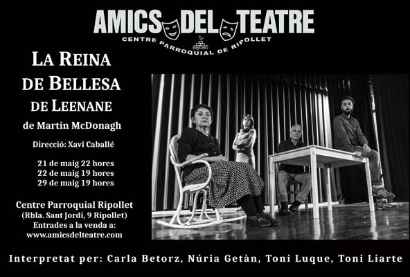La representació teatral La Reina de Bellesa de Leenane es representarà durant aquest mes al Centre Parroquial. L'entitat Amics del Teatre representarà l'obra en tres sessions el 21 de maig a les 22 hores i el 22 i 29 de maig a les 19 hores.