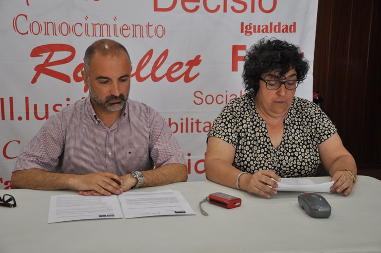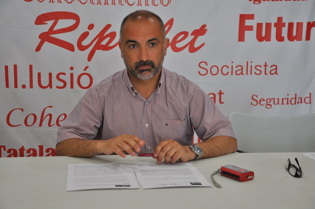 Fotos: els regidors socialistes Luís Tirado i Maria Lladó a la roda de premsa a la seu del PSC del dimecres 1 de juny.