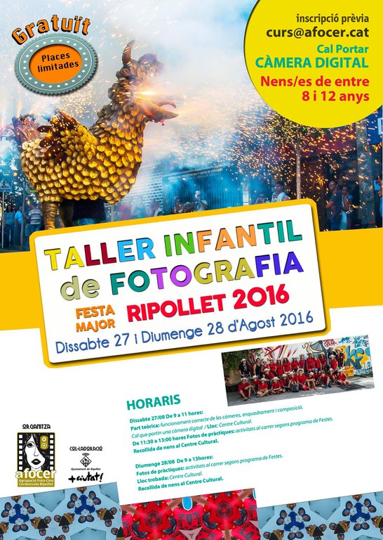 Per altra banda, Afocer ha preparat un taller de fotografia adreçat a infants d'entre 8 i 12 anys. L'activitat tindrà lloc al Centre Cultural, equipament on també s'han de formalitzar les inscripcions. Les places són limitades. De nou a onze del matí hi haurà una formació teòrica i, a partir de dos quarts de dotze fins a la una de la tarda hi haurà una sortida per posar en pràctica allò que s'ha après. Els participants hauran de portar la seva pròpia càmera digital. La sortida es repetirà diumenge, de nou del matí a la una de la tarda.