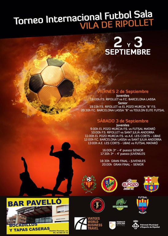 Els enfrontaments començaran aquest divendres a la tarda, a partir de les 18 hores, amb el partit de juvenils entre el FS Ripollet i el FC Barcelona Lassa. A les 19.15 h, els sèniors ripolletencs s'enfrontaran al Pozo Murcia 'B', i després el FC Barcelona se les veurà amb el conjunt francès. Dissabte al matí, es disputaran els diferents enfrontaments de categoria juvenil. A la tarda i vespre, tindran lloc les grans finals tant juvenil com sènior.