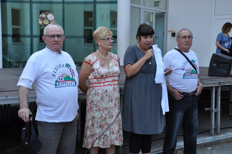 L'acte va comptar amb una primera intervenció per part de Reyes Muñoz, regidora de Serveis Socials, que va agrair la tasca feta pel Casal d'Avis i pel Club de Jubilats. També va remarcar la col·laboració de les diverses entitats. Per últim, va recordar al públic que comprés les samarretes reivindicatives del Club de Jubilats. La plataforma de gent gran havia instal·lat un estand on venia unes samarretes, en les quals es reclama la residència d'avis.