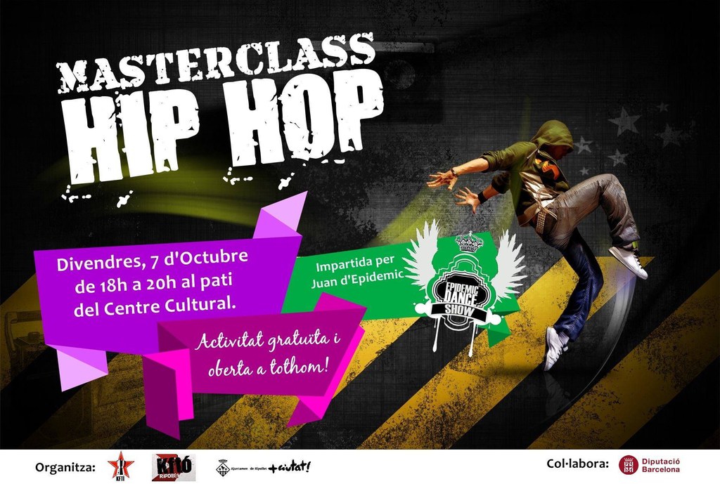 La Regidoria de Joventut organitza aquest divendres, 7 d'octubre, a les 18 hores una masterclass de hip hop. El taller anirà a càrrec de Juan López, de l'entitat Epidèmic Dance Show. Es tracta d'una activitat gratuïta i oberta a tothom, que es durà a terme al pati del Centre Cultural.