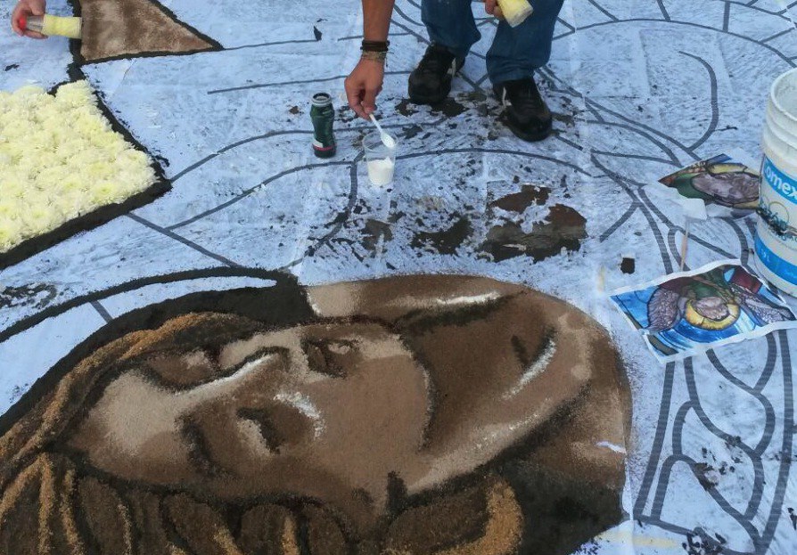 Fotos: Cultura i Tradició eleborant una catifa a Mèxic i el quadre de La madonnina