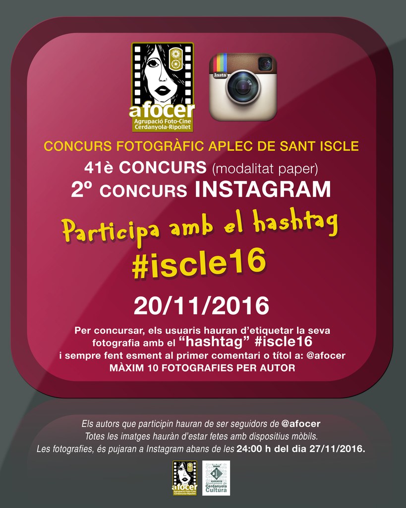 Els participants en el concurs d'Instagram, que hauran de ser seguidors d'Afocer en aquesta xarxa social, hauran de captar les imatges amb dispositius mòbils i pujar-les amb l'etiqueta #iscle16 i fent esment a @afocer. No es poden pujar més de deu imatges per participant.