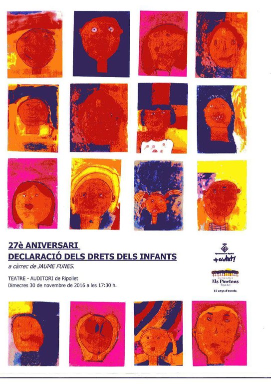 En el marc del seu desè aniversari, l'escola pública Els Pinetons, juntament amb l'Ajuntament de Ripollet, ha organitzat un acte commemoratiu del 27è aniversari de la Declaració dels Drets dels Infants. Es tracta d'una presentació sobre la convenció dels drets dels infants de l'ONU del 20 de novembre de 1989, incidint en aspectes com ara el lleure com a dret dels infants o els drets dels infants refugiats. L'acte tindrà lloc el dimecres, 30 de novembre, a les 17.30 h al Teatre Auditori del Mercat Vell. Les entrades s'han de recollir a la taquilla del teatre abans de l'acte.