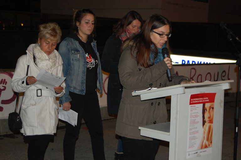 L'homenatge va finalitzar amb la lectura del manifest institucional del Dia internacional per a l'eliminació de la violència vers les dones, a càrrec de membres de la Taula Feminista. Entre altres aspectes, el manifest d'enguany destacava a Catalunya el paper de la Llei 17/2015 d'Igualtat efectiva de dones i homes, tot lamentant una sentència del Tribunal Constitucional que "ha anul·lat alguns articles concebuts per promoure la igualtat al món laboral".