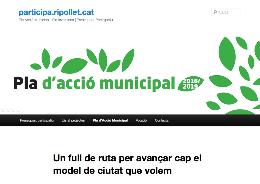 La coalició Decidim indica que l'equip de govern ha presentat, a la plataforma participativa participa.ripollet.cat, els objectius principals del PAM. També "ha anunciat que es desplegarà en tota la seva totalitat a principis del 2017 lligat a un procés obert a les aportacions dels veïns i veïnes del municipi". D'aquesta manera, els interessats podran trobar al PAM "tots els projectes estratègics, programes i accions impulsats des del govern de Decidim per tirar endavant el programa de govern", com també les accions acordades en el treball conjunt amb el grup municipal d'ERC-JpR. El PAM també recollirà totes aquelles aportacions que s'acabin recollint fruit del procés participatiu.