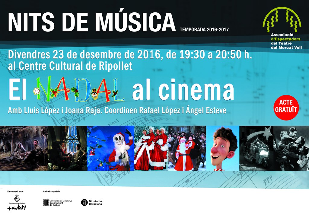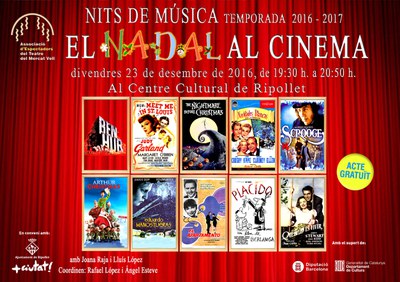 La sessió de Nits de Música d'aquest divendres, 23 de desembre, es dedicarà al paper del Nadal en el cinema. Sota el títol de 'El Nadal al Cinema', Lluís López i Joana Raja analitzaran el paper del Nadal a films tan coneguts com ara 'Ben-Hur', 'Pesadilla antes de Navidad', 'Que bello es vivir', 'El apartamento' o 'Eduardo Manostijeras', entre altres.