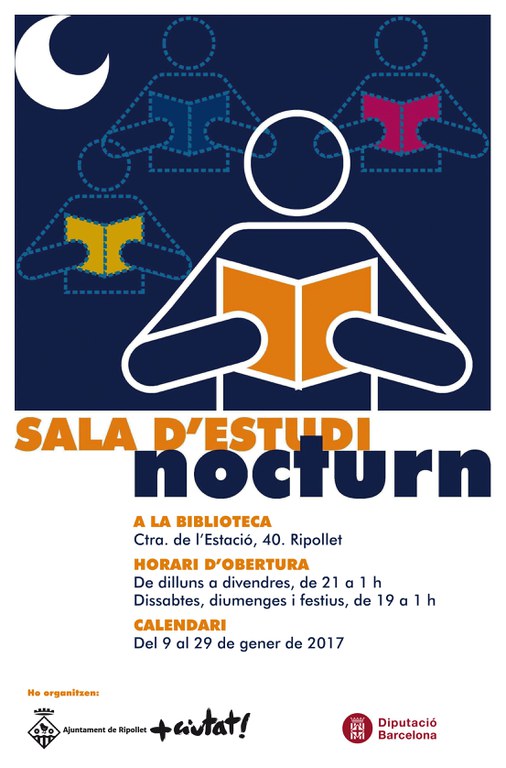 Des del 9 fins al 29 de gener, es torna a posar en funcionament la Sala d'Estudi Nocturn a les dependències de la Biblioteca Municipal. Estarà en servei de 21 hores fins a la 1 de la matinada els dies laborables i de 19 hofes fins a la 1 els festius i caps de setmana.