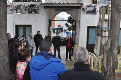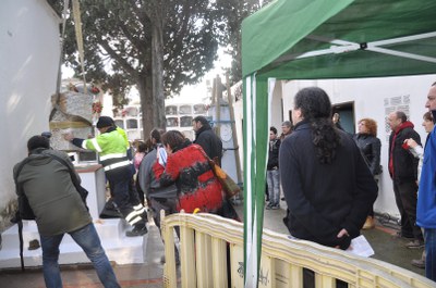 Coincidint amb els 78 anys de l'entrada de les tropes franquistes a Ripollet, el 26 de gener l'Ajuntament va retirar el monòlit franquista erigit al Cementiri Municipal. En el seu lloc, s'ha instal·lat un peça de marbre, amb una placa d'homenatge "A tots els morts de la Guerra Civil". La mesura s'emmarca en el projecte de retirar els símbols feixistes que encara resten al municipi. Els treballadors de la Brigada Municipal van suar de valent per moure el monòlit, perquè, segons va ironitzar el regidor Fontanals, "el feixisme es resisteix a marxar". Es conservarà a l'arxiu del Molí d'en Rata.