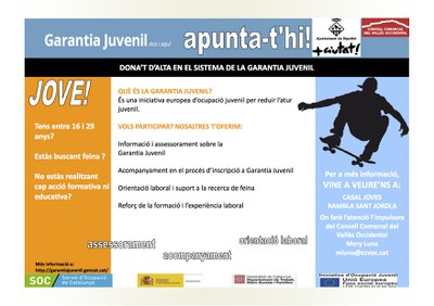 Al Casal de Joves trobaran una atenció personalitzada, tant per a la inscripció a la Garantia Juvenil com per informació dels diferents programes. També s'acompanya als joves en el procés d'inserció laboral, recerca i adquisició de competències per l'ocupació. Igualment, s'ofereix un assessorament personalitzat a través d'entrevistes i tutories, informació i derivació als recursos formatius existents i la possibilitat de participar en tallers grupals per a joves.