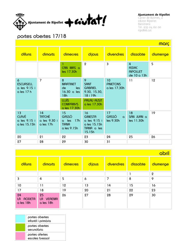 Aquest mes també s'ha de presentar la documentació per a les beques escolars. El termini és del 27 de març al 28 d'abril, i s'ha de portar a l'Oficina d'Atenció al Ciutadà. Les sol·licituds es poden trobar als centres, a Serveis Socials, a l'OAC i a ripollet.cat.