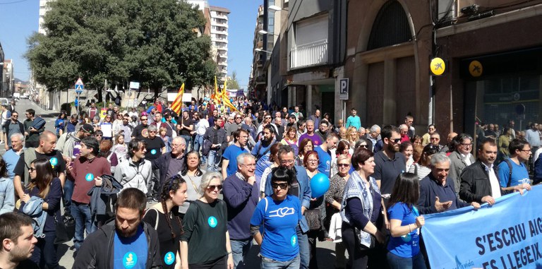 Amb els lemes 'S'escriu aigua, es llegeix democràcia' i 'Per una gestió pública i democràtica de l'aigua', al voltant d'unes 3.000 persones es van manifestar aquest passat diumenge, 19 de març, a Terrassa, en la defensa de la municipalització de l'aigua arreu de Catalunya. Una protesta que va comptar amb el suport explícit d'una norantena d'entitats d'arreu del país, associacions de veïns, sindicats i formacions polítiques, entre ells Decidim Ripollet, les CAV, l'Aliança contra la Pobresa Energètica o la PAH. La marxa havia estat convocada per la Taula de l'aigua de Terrassa i Aigua és vida.