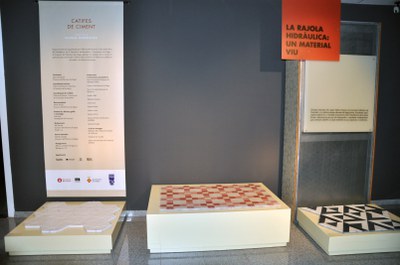 La mostra 'Catifes de ciment pretén' valoritzar "la rajola hidràulica", un objecte estretament vinculat a l'arquitectura catalana, abastament utilitzat entre 1890 i 1930. El seu discurs expositiu permet conèixer on situar els orígens de la rajola hidràulica, els seus principals fabricants, la seva tècnica i percebre l'evolució del seu disseny.
