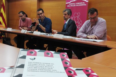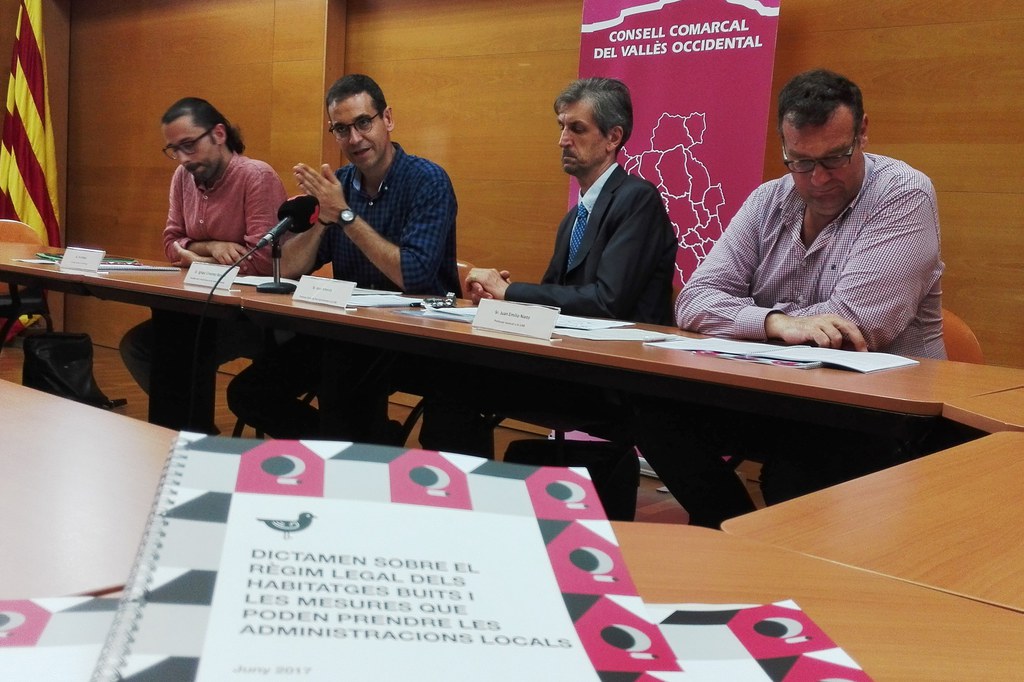 Recuperar els habitatges buits de la comarca del Vallès Occidental donant-los un ús social. Aquest és un dels objectius que s'ha proposat el Consell Comarcal per tal d'afrontar el problema del gran nombre de pisos buits que hi ha a la comarca. Des d'ara, els ajuntaments i el Consell Comarcal del Vallès Occidental tenen una nova eina per aconseguir-ho. Es tracta del 'Dictamen sobre el règim legal dels habitatges buits i les mesures que poden prendre les administracions locals', un informe elaborat per la Universitat Autònoma de Barcelona (UAB) a instàncies del Consell d'Alcaldes i Alcaldesses i amb el suport de la Diputació de Barcelona. El Dictamen (podeu consultar-lo al document adjunt) es va presentar el 27 de juny amb l'assistència d'Ignasi Giménez, president del Consell Comarcal; Pol Altayó, conseller comarcal d'Habitatge, Joan Amenós, professor titular de Dret Administratiu a la UAB i Juan Emilio Nieto, professor associat a la Universitat Autònoma de Barcelona.