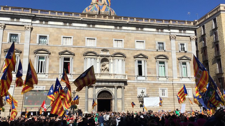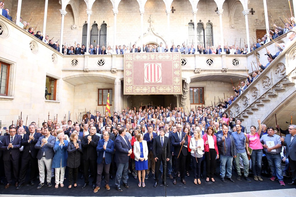També van prendre la paraula diversos alcaldes del territori català i seguidament van tenir lloc els parlaments institucionals a la Galeria Gòtica del Palau de la Generalitat. El primer a parlar va ser el vicepresident de la Generalitat, Oriol Junqueras, qui va remarcar aquell dia com "una peça clau per l'1 d'octubre, i un referèndum al voltant de la democràcia en defensa de les llibertats fonamentals com la d'expressió i reunió".