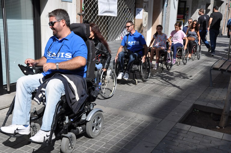 De fet, a les 12 i a les 13 h, AFIS va organitzar per la rambla de Sant Esteve un circuit en cadira de rodes perquè es prengués consciència dels obstacles que les persones que han de desplaçar-se en cadira de rodes es troben en el seu quefer diari. En el segon d'aquests circuits va participar el regidor de Mobilitat, Fran Sánchez.