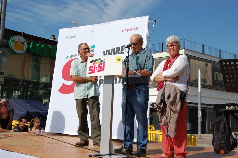 El passat dissabte, 23 de setembre, va tenir lloc, a la plaça de Pere Quart, un acte comarcal sota le lema "Viure vol dir prendre partit", organitzat pel COP-Compromís per Ripollet i la CUP. A l'obertura, es va fer lectura del manifest de la Taula pel Sí, entitat que aglutina a les diferents forces independentistes de Ripollet. Seguidament, l'acte va comptar amb les intervencions dels exregidors el COP durant la primera legislatura: Inma Prat, Eligio Medina i Alfredo Lafuente; el diputat de la CUP, Nana; la militant del COP, Alba Soria i el carismàtic alcalde de Marinaleda, Juan Manuel Sánchez Gordillo.