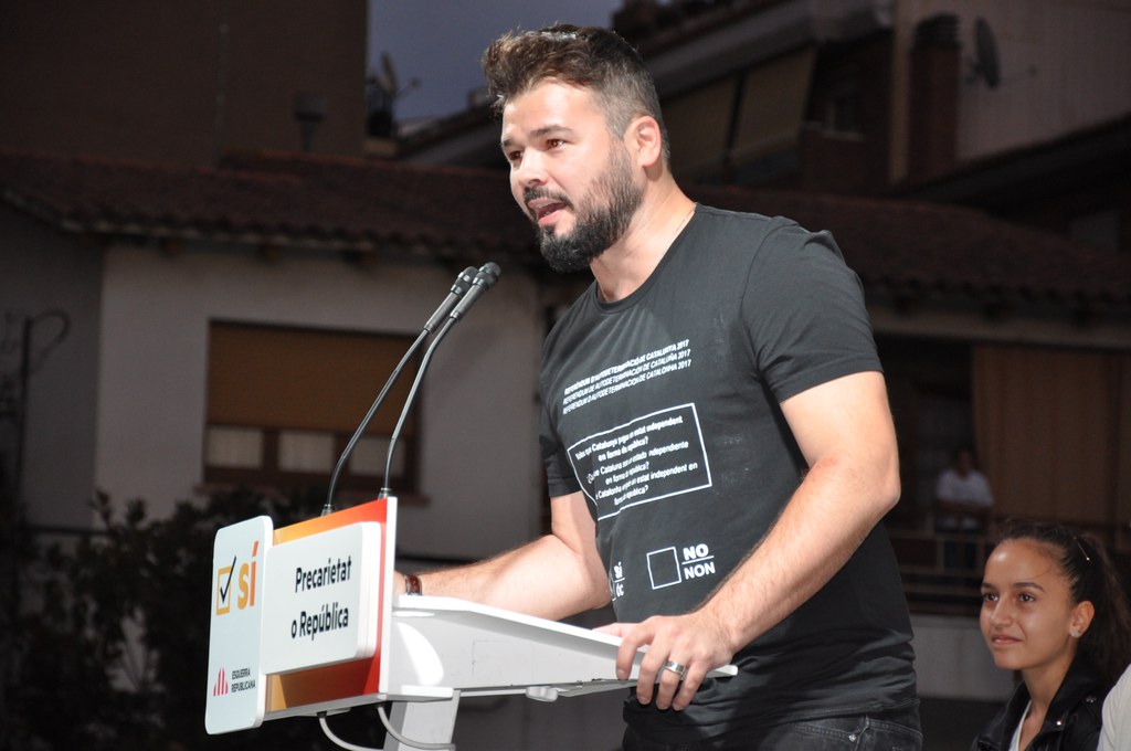 Davant una audiència entregada, Rufián va proclamar l'aspecte republicà i d'esquerres que el seu partit vol marcar a la independència de Catalunya, un moviment que va entroncar amb el republicanisme de després de la Guerra Civil espanyola, per la qual cosa també va animar els republicans espanyols a "enderrocar les restes del feixisme que queden a Espanya", tot declarant que "el franquisme morirà el dia 1 d'octubre en una urna".