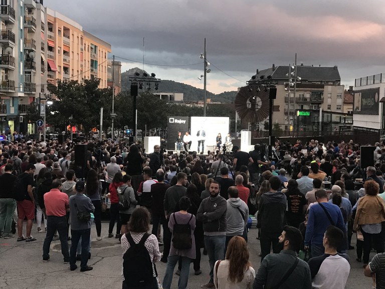 Una plaça del Molí plena a vessar va acollir l'acte de campanya d'ERC a favor del Sí al referèndum d'autodeterminació previst per a l'1 d'octubre i en el qual van intervenir el vicepresident de la Generalitat, Oriol Junqueras, els diputats al Parlament de Catalunya Marc Sanglas, Chakir el Homrani i Marta Vilalta, i el diputat al Congrés Gabriel Rufián.