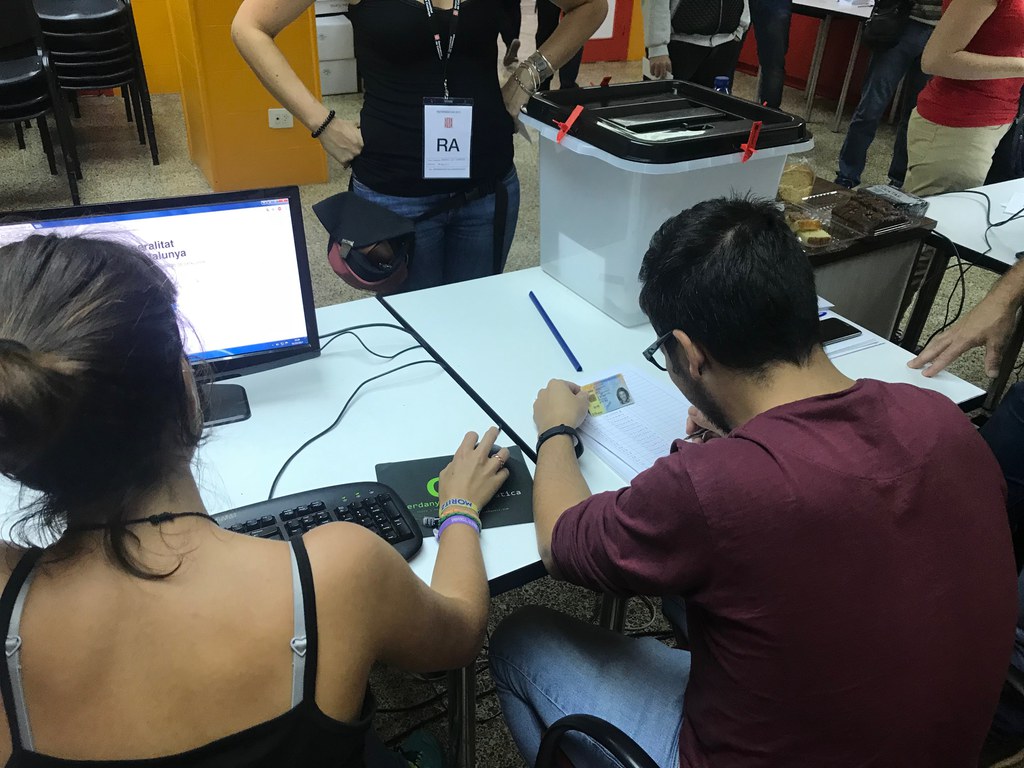El dispositiu electoral ha compat amb un centenar de voluntaris, entre acreditats per la Generalitat i l'ANC i una cinquantena més de persones, entre vocals i presidents de prop de 20 meses constituïdes. Davant l'ordre del govern central de tancar els col·legis, a les 5 de la matinada ha començat a arribar gent per custodiar-los. Primer El Martinet i l'Anselm Clavé i després al Ginesta i finalment al Centre Cívic del Pont Vell, que es va habilitar en lloc de l'escola Tiana. Cal tenir en compte que normalment obren 9 col·legis.