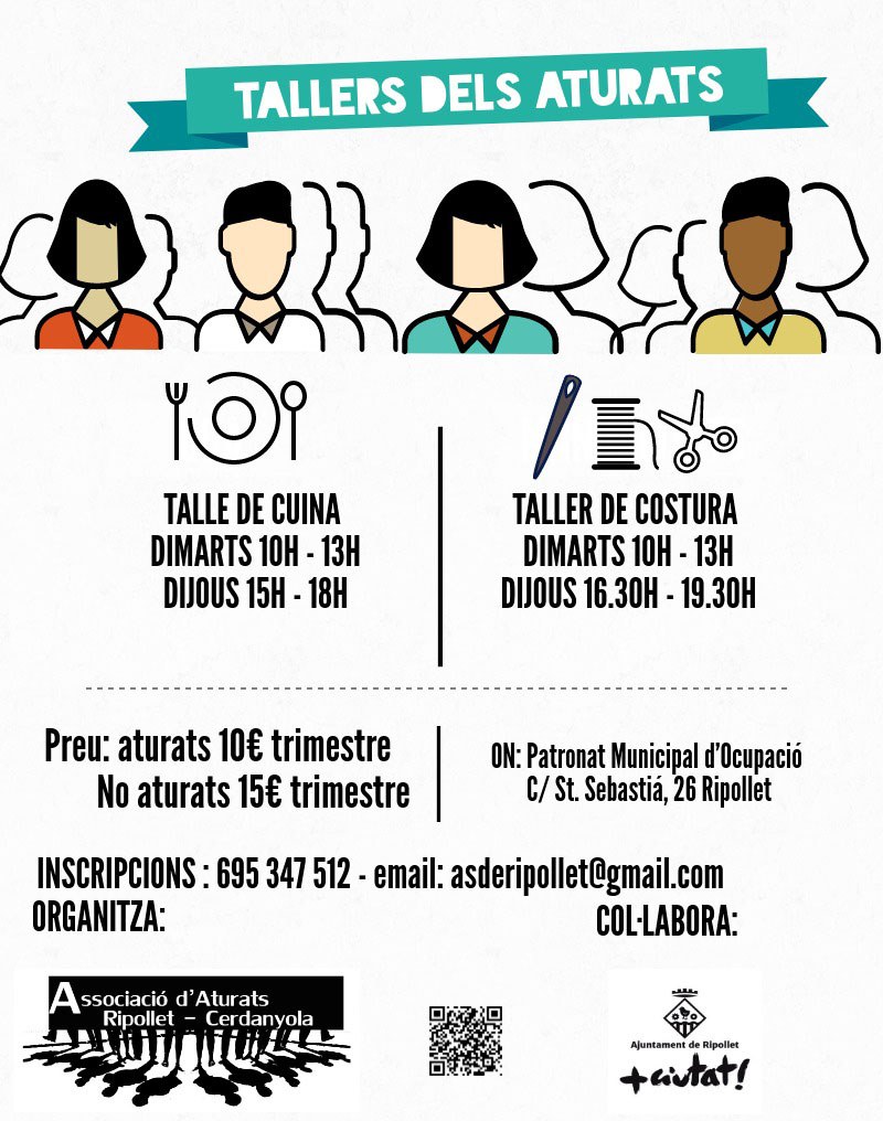 Aquest mes de novembre tornen els tallers dels aturats, organitzats per l'Associació d'Aturats Ripollet-Cerdanyola i amb la col·laboració de l'Ajuntament de Ripollet. Les inscripcions als tallers es poden realitzar durant el mes d'octubre. Es pot trucar al 695 347 512 o enviar un correu electrònic a asderipollet@gmail.com.