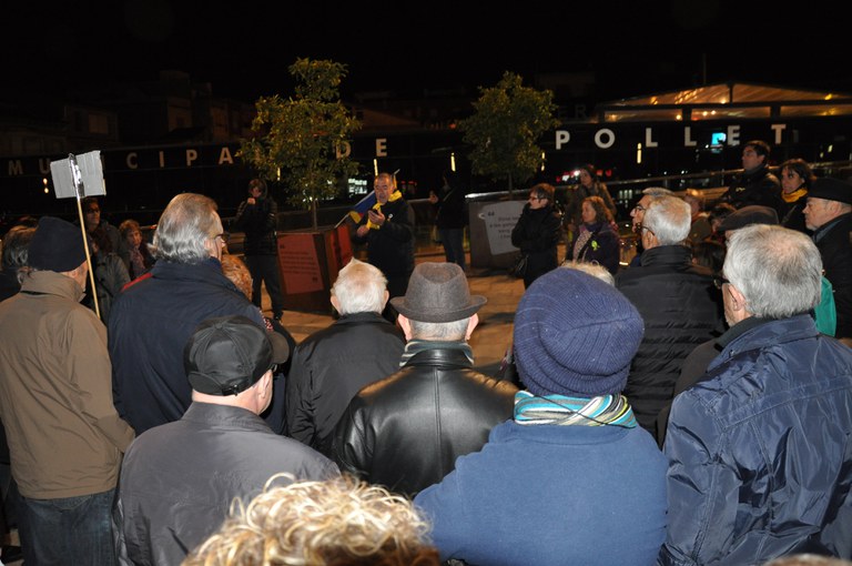 Desenes de persones van acudir a la crida realitzada pel CDR de Ripollet per demanar la sortida de la presó dels dels restants consellers cessats i dels Jordis. Els presents portaven llaços i mocadors grocs i van fer proclames a favor de l'alliberament. També per la unitat del bloc independentista, ja que, segons un dels representants del CRD, els rivals estan als partits del bloc constitucionalista i no entre els mateixos sobiranistes.