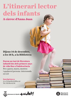 La Diputació de Barcelona porta, aquesta setmana, la xerrada "L'itinerari lector dels infants: Suport a la lectura en família" a diversos centres educatius de Ripollet i la Biblioteca Municipal. La doctora en Antropologia Social i Cultural Anna Juan, especialitzada en literatura infantil i juvenil i projectes de lectura i biblioteques escolars, recomanarà llibres que poden interessar els infants segons l'edat i el seu nivell lector, des dels primers anys de vida fins a l'adolescència. A més, es donaran pautes per fer una bona tria de llibres infantils i es parlarà de les capacitats lectores i les preferències literàries per edats.