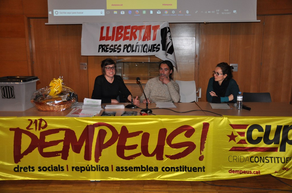 Prop d'un centenar de persones van assistir a l'acte de campanya de les CUP, celebrat al Centre Cultural de Ripollet, el dilluns, 18 de desembre, sota el lema "21D Dempeus". Van intervenir el número 7 per Barcelona, Ramon Vancells i la diputada Mireia Vehí. Álvaro Dante (Som Alternativa) finalment no va poder participar.