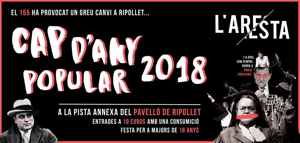 El col·lectiu popular l'Aresta ha organitzat una festa de cap d'any a la pista annexa del pavelló Joan Creus, d'1 de la matinada fins les 8 del matí. Amb aquesta iniciativa, l'Aresta ha volgut donar resposta a un mancança que, segons ells, hi havia al municipi: "necessitavem ja fer alguna cosa per no haver de marxar fora del poble. Des de fa uns anys, no tenim res a banda dels bars a Ripollet i sempre hem de marxar fora a celebrar el cap d'any", explica Laia González, membre del col·lectiu.