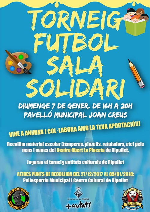 L'Associació Ripollet Rock comença l'any 2018 organitzant, el dia 7 de gener, un torneig de futbol sala solidari, en el qual participaran diferents entitats. L'Esplai l'Estel, El Local, els Diables de Ripollet i l'Associació Ripollet Rock formaran els equips participants del torneig, el qual servirà per recollir material escolar pels infants del Centre Obert La Placeta.