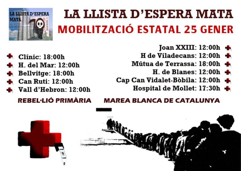 Aquest migdia s'han concentrat davant el CAP 1 de Ripollet treballadors sanitaris, acompanyats de representants de diferents entitats i partits polítics, per protestar contra el creixement de les llistes d'espera. La convocatòria, realitzada per la Marea Blanca Catalunya i la Coordinadora Antiprivatització de la Sanitat (CAS), s'hi ha realitat a centres d'assistència sanitària de tot Catalunya. A Ripollet s'hi han sumat personal dels CAP, la Plataforma en Defensa de la Sanitat Pública, l'Associació d'Aturats Ripollet-Cerdanyola, Podem, COP i EUiA, entre altres. A les 18 hores es durà a terme a l'hospital Taulí.