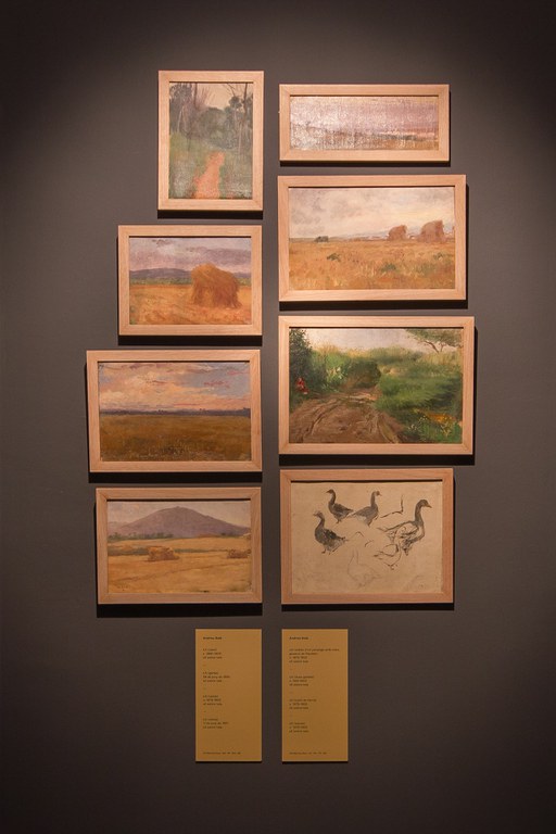 La major part d'obres de l'exposició són pictòriques, tot i que hi ha esbossos, reproduccions d'articles i il·lustracions, com les del Dietari d'un pelegrí a Terra Santa, de Verdaguer. L'obra d'Andreu Solà permet conèixer com era Ripollet al segle XIX, ja que retrata com eren els paisatges del seu entorn.