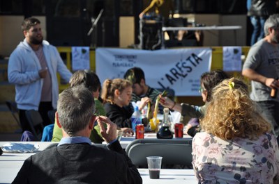 El col·lectiu popular L'Aresta va celebrar, diumenge 28 de gener, el seu primer aniversari amb una jornada de reflexió i oci a la plaça Joan Abad. Una taula d'experiències per parlar de poder popular, amb la participació del Casal de Joves La Xesca de Sant Cugat i representants del CFA Jaume Tuset, va donar el tret de sortida a la celebració. Es van posar sobre la taula qüestions com el treball per la cohesió social, la construcció del poble des dels barris o el protagonisme de la ciutadania.