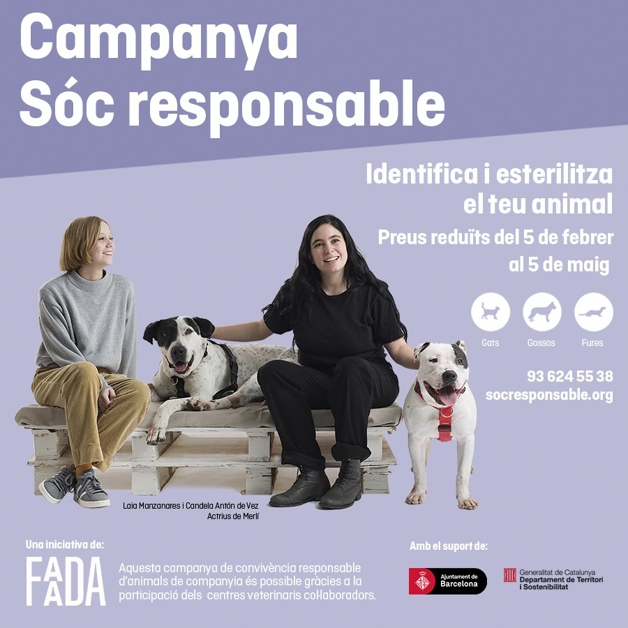 Fins al 5 de maig estarà en marxa la campanya d'enguany "Sóc responsable", organitzada per l'entitat FAADA per a la identificació de gossos, gats i/o fures a preus promocionals. Ripollet es torna a adherir a aquesta promoció, la qual estarà disponible als centres veterinaris Faunarama (c. de Sant Jaume, 77), Centre Veterinari de Ripollet (c. de Sant Lluís, 2, baixos) i Faunarama 2 (c. de Nostra Senyora dels Àngels, 16).