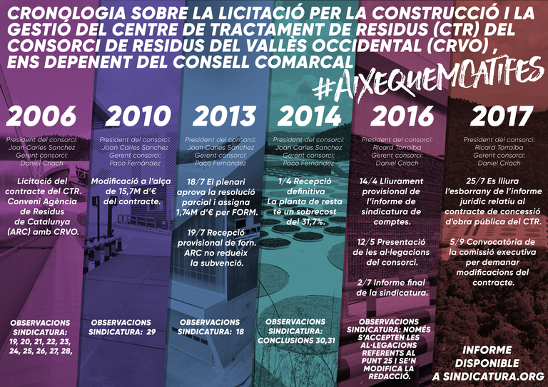 En una roda de premsa organitzada el dia 8 de febrer i en la posterior nota de premsa, la coalició explica que l'informe de la Sindicatura de Comptes 14/2016 exposa fins a 14 observacions que fan referència al contracte de construcció i gestió del CTR, ens que depèn del Consell Comarcal del Vallès Occidental. Aquestes irregularitats tindrien com a objectiu afavorir a una empresa concreta en l'adjudicació de l'obra i la posterior gestió del centre.