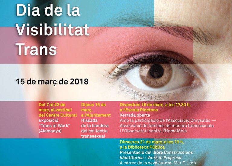 Així, des del passat dia 7 i fins el 22 de març, el vestíbul del Centre Cultural acull 'exposició "Trans at work". Divendres, 16 de març, a les 17.30 hores, l'escola Els Pinetons va ser l'espai on es va fer una xerrada oberta al públic amb l'entitat Chrysallis-Associació de famílies de menors transsexuals, amb la col·laboració de l'Observatori contra l'Homofòbia. Per últim, el dimecres 21 de març, a les 19 hores, a la Biblioteca Municipal, es presentarà el llibre "Construccions identitàries - work in progress", a càrrec de la seva autora, Mar C. Llop.
