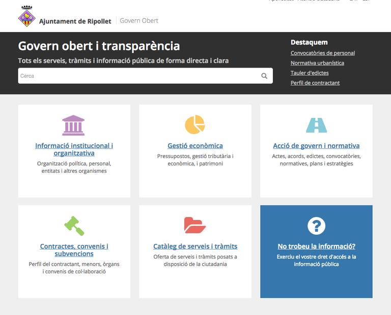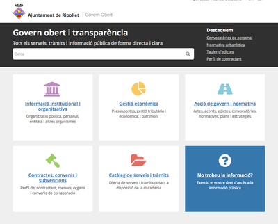 El 2016, va entrar en vigor la Llei de transparència, accés a la informació pública i bon govern de Catalunya (LTC), per la qual l'administració, els organismes i els ens públics tenen l'obligació de donar a conèixer la informació relativa als seus àmbits d'actuació, amb caràcter permanent i actualitzat. Amb aquest objectiu naixia el Portal de Transparència de l'Ajuntament de Ripollet, al qual es pot accedir a través de la seu electrònica, a l'apartat de "Govern obert i transparència". En global, segons marca el consorci AOC (Consorci de l'Administració Oberta de Catalunya), l'Ajuntament es troba en un estat d'acompliment del 83,22 %. Dels 143 ítimes que avalua tenen 119 empenats i en falten 24.