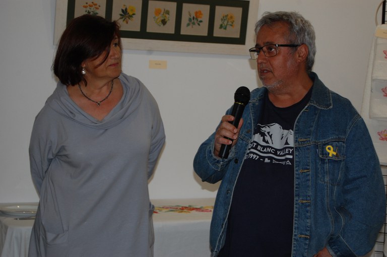La directora de l'Escola d'Adults, Montse Fisas, durant la seva intervenció, ha volgut agraïr la tasca de totes les persones que imparteixen els tallers i la seva implicació en el projecte. Fisas ha cedit la paraula a "dos referents": Maria José Brianso i Montse Castellví, dues de les fundadores del centre i responsables de l'elaboració dels plafons informatius que s'exposen a la mostra. Castellví ha destacat la importància dels tallers, ja presents des dels inicis, i la participació com a tret essencial del projecte. Brianso, per la seva banda, ha lloat la tasca dels talleristes: "Després de 40 anys, hem estat capaços de mantenir la participació i el mèrit està en les persones voluntàries que ho fan possible".