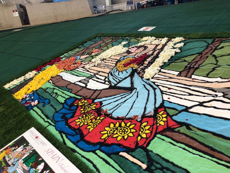 La catifa era una adaptació dels vitralls del Museu d'Art de Cerdanyola. Padró i els altres catifaires van ser convidats per formar part de l'International Roses Gardening Show. La cerimonia d'inauguració va estar presidida per la Princesa Imperial del Japó.