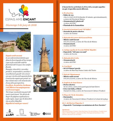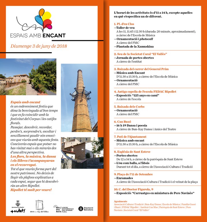 Coincidint amb la celebració del Corpus, aquest diumenge 3 de juny, arriba una nova edició dels "Espais amb encant". L'objectiu de l'Ajuntament de Ripollet, amb aquest esdeveniment, és mostrar l'encant patrimonial i històric del nucli antic del municipi. Per això, es mostren diferents racons i edificis que, potser, passen desapercebuts o no estan a l'abast de la ciutadania.