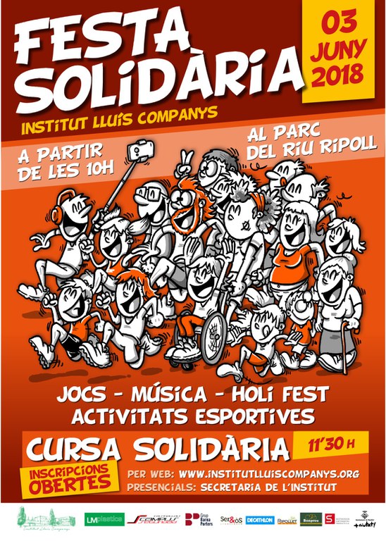 LC-Solidaritat de l'Institut Lluís Companys ha organitzat, el diumenge 3 de juny, una nova Festa Solidària, oberta a la ciutadania. Durant tot el dia, el parc del riu Ripoll s'omplirà de jocs, música, actuacions d'entitats, una rifa, una Holi Fest i activitats esportives. Entre elles, la 2a cursa solidària, que arrancarà a les 11.30 h. Les inscripcions per participar-hi es poden realitzar, fins al mateix dia 3, de forma presencial al centre, a les hores del pati, d'11.15 a 11.45, i els dimecres a la tarda, de 16 a 18 h. També es poden fer online, en aquest link. Totes les persones inscrites rebran una samarreta.