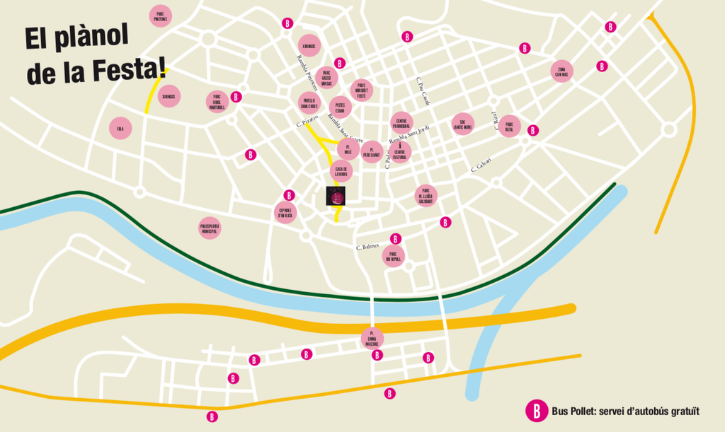 L'Ajuntament de Ripollet, amb la col·laboració d'Autocars Font, ofereix el Bus Pollet, un servei gratuït d'autobús durant la Festa Major. Enguany, funcionarà divendres i dissabte, de 18.30 h a 23.30 h, i diumenge, de 18.30 a 22.30 h. Amb una freqüència de pas de 30 minuts, uneix els diferents escenaris de Festa Major.