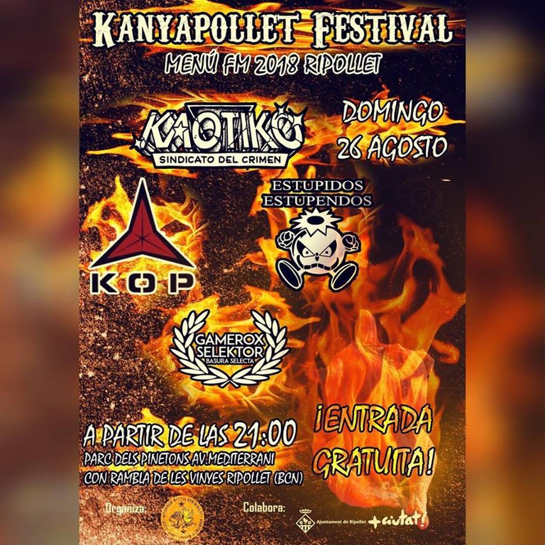 Per la seva banda, Kop és un grup establert a Badia del Vallès de hardcore punk. Des de l'Associació musical Kanyapollet, expliquen que, si el cartell de l'any passat era més de rap, enguany és de punk-rock. "Kaotiko és un grup que no actua gaire a Catalunya, només en festivals, i creiem que pot portar gent jove de fora de Ripollet que els vinguin a escoltar", comenten des de l'organització.