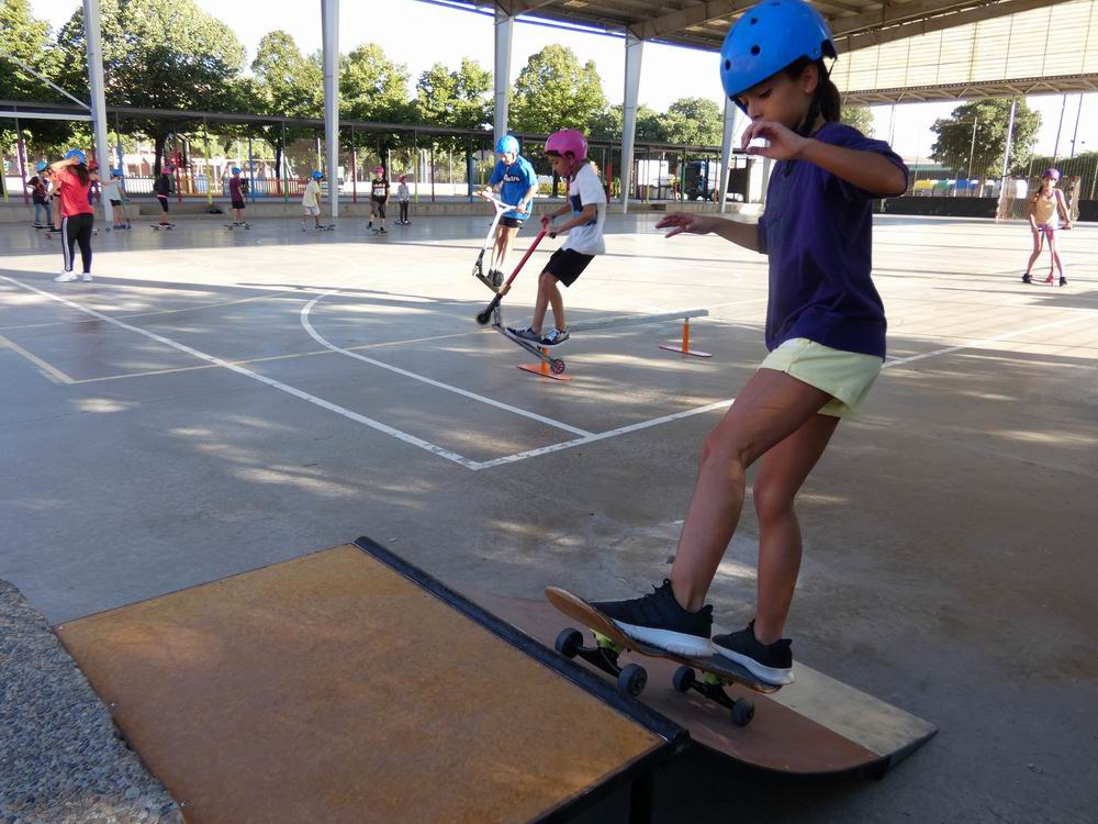 Cada classe està encarregada de treure o recollir el material a l'hora del pati, i a final de mes es fa inventari per si s'ha d'arreglar o substituir. D'aquesta manera, els alumnes d'edats entre 6 i 12 anys, col·laboren entre ells i prenen responsabilitat. Actualment, la quitxalla pot decidir entre diverses activitats, com un rocòdrom, xanques i música, però l'estrella del pati són els patins i els skates.