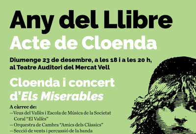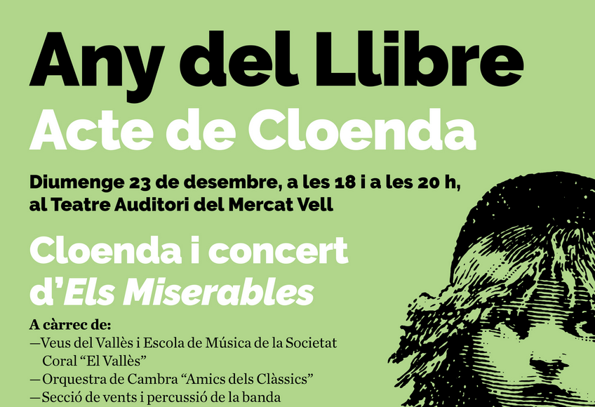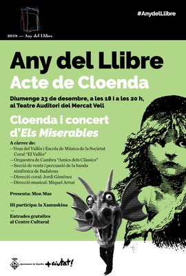L'Any del Llibre 2018 s'acaba. Ha estat un any ple de lletres i llibres, que continuaran lliures; un any que ens deixa un Sant Jordi diferent, la dragona Xamuskina i el nou espai dedicat a Maria Aurèlia Capmany. Un any on l'equipament de la Biblioteca ha tingut un paper protagonista, tot i que, desprès de l'Any Lorca i l'Any Clavé, l'Any del Llibre s'ha convertit en el màxim exponent del treball col·laboratiu, engrescat no només a entitats, sinó també a centres educatius, escriptors i artistes. Aquest diumenge, 23 de desembre tindrà lloc l'acte de cloenda de l'Any del Llibre, amb el concert d'Els Miserables al Teatre Auditori.