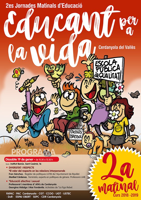 L'acte comptarà amb la participació de Maribel Cárdenas, professora en sociologia de la UAB i experta en feminisme, i Fran Sánchez, regidor de Polítiques LGTBI a Ripollet. Amdós parlararan sobre els avenços en matèria feminista que s'han fet fins ara, i el que encara fa falta fer. Més tard, professorat, membres d'AFA i activistes de l'associació Figa Rebel compartiran experiències concretes a Cerdanyola tant en el camp educatiu com en el de l'activisme social.