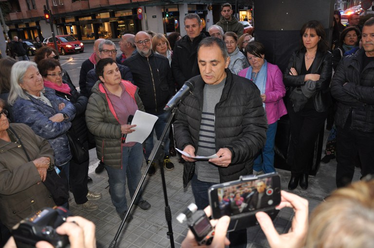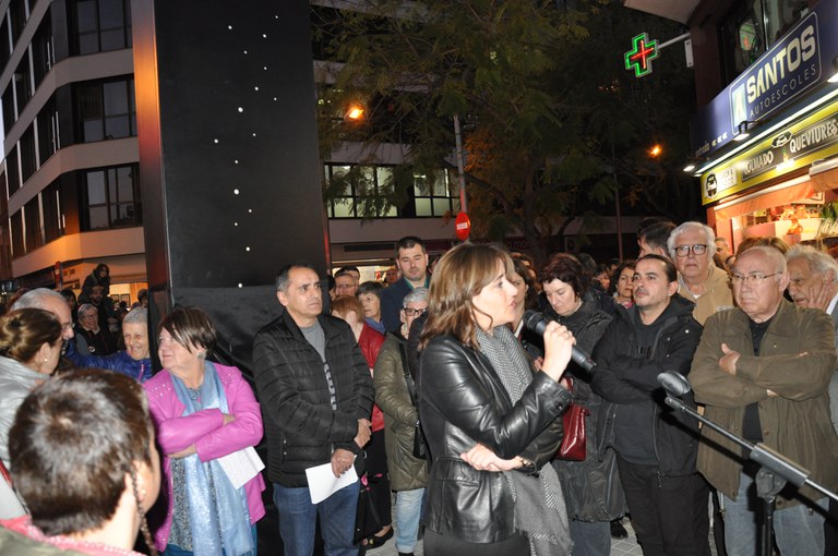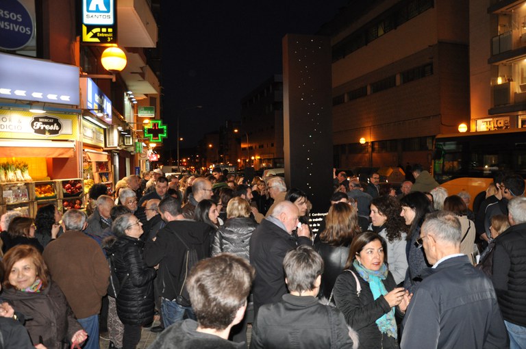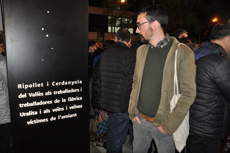 Desenes de persones van assistir a l'acte de descoberta del monòlit, celebrat el passat dimarts, 26 de març. Va obrir els parlaments Fernando Saavedra, en representació de l'AVAAC, qui va fer una crida a "trencar el tabú de l'amiant", perquè "no actuar ens fa còmplices del mal que poden patir les noves generacions" i va advertir del deteriorament del fibrociment que hi ha arreu, fent un clam al desamiantat, que considera "imprescindible" per prevenir una segona epidèmia de càncer de pulmó per inhalació de fibres d'amiant. També va reclamar un fons de compensació a les víctimes i el compliment rigorós de la normativa.