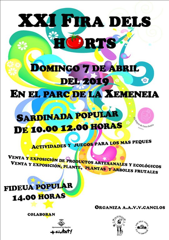 El parc de la Xemeneia acollirà una primavera més la tradicional Fira dels horts, organitzada per l'AV de Can Clos. Durant tot el dia, els visitants podran gaudir d'una mostra de productes artesans i ecològics, venda de flors i plantes, actuacions musicals i activitats infantils.